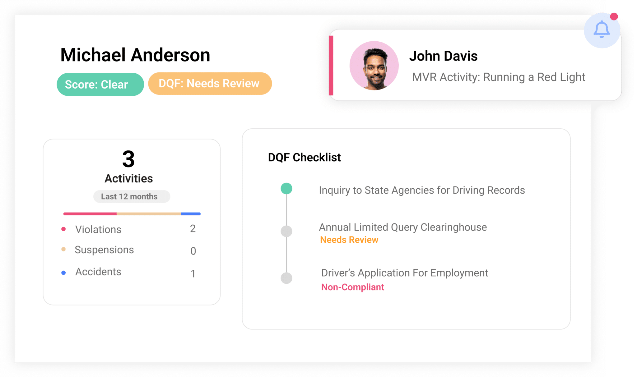 Our DQF software, seamlessly integrated within our MVR Monitoring platform, simplifies driver file management and guarantees effortless compliance.